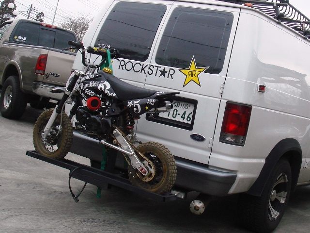TRUCKのベッドに載せるのも常套手段ですが車高が高すぎて載せるのに一苦労って人にはコチラのスタイルもお勧めです!ヒッチレシーバー付きのクルマにはこうしたワンオフのバイクキャリアもAPTCOで製作可能ですのでご相談を★ ヴィジュアル系ショップとしてはこの辺もコダワラセテイタダキマス★