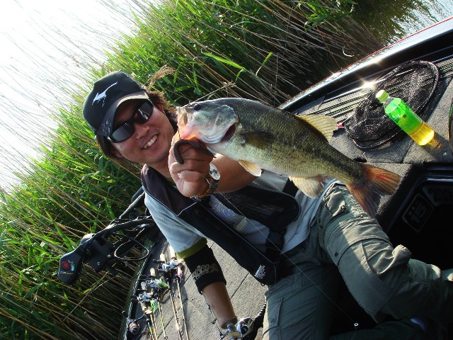さすがプロフェッショナル!今日もミラクルキャストでビシッと決めてくれるのがカトリーヌ★ ブッシュから強引に引き抜く引き抜く!これぞプロの実力というところを目の当たりにしたワタクシもダイブ昂ぶりました!!そしてワタクシのつたない釣り人生の中でも記念すべきBIG ONEが・・・HOOK ON!!