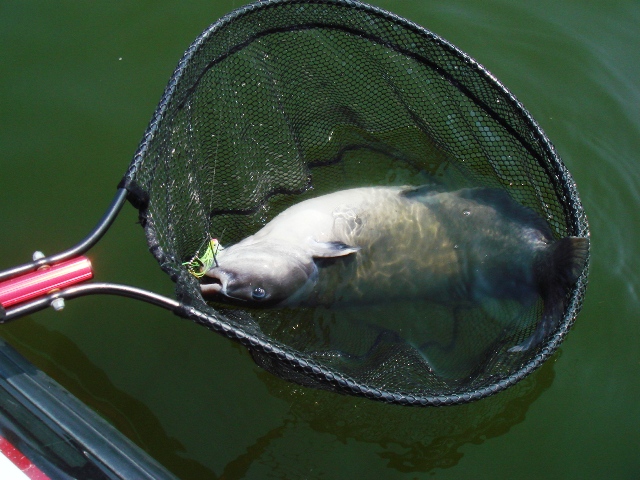 ハンドランディング出来ないほどの大物がhitです♪ 人生初のキャッチネットでのランディング!!「こいつわデカイ!」ロッドとドラグが悲鳴をあげます・・・。