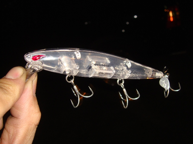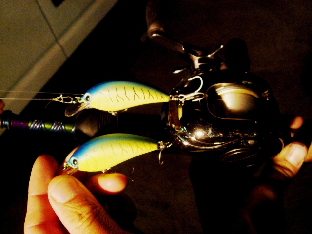 ルアーにもカスタマイズを施すんですねぇ・・・これは簡単な1例でカスタムペイント?になるのかな。上下を見比べると縦ストライプのコントラストの違いに気付くはず。上はわざとマジックで色を濃くするらしいです。そうすると水中で残像が残るとか・・・。ん~深いですなぁ。他にも禁断?のカスタマイズが色々あるらしいです。透明ルアーにピンストとか入れたくなりますね★