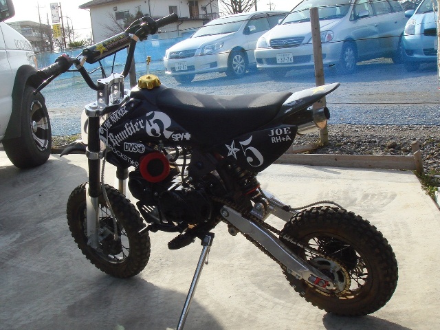 まずは自己満足ネタから・・・前回のシェイクダウンで見事にアツくなってしまった私は最終コーナーでスリップダウンしてガソリンをブチ撒いて初乗りto初破壊とまさにクラッシャーJOEブリを発揮★修理がてらグラフィック的な装飾をしてみました。HONDAやKWASAKIが買えないプアな男なので(ポアじゃないですよ!)買っちゃいなchina-motoデス。エンジン初始動5分後にリアマスターシリンダのリンク部品がドコかに消えてゆきました。すぐ直しチャイナ!って感じです。ミニモトは楽しいですよ!TRUCKの荷台に積むとカッコイイしね!さぁトノカバーなんか駐車場の壁に立てかけてしまえぃ★