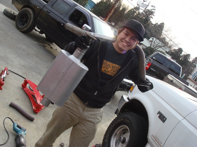 続いてはCRAFTの話題です。チームメイツの最年少で3-dicekの一番下っぱである「コダカ ダイスケ」が駆るD22の排気管作りを行いました。QP4時間フィッティング♪の始まりです。切る、測る、曲げる、溶ける、繋げる、塗るの工程を繰り返してようやく完成です。FLOWMSTER 40で作りました。I4なのになかなかのサウンドでダイスケ本人はニヤケっぱなしでした。喜んでいたので良かった良かった。