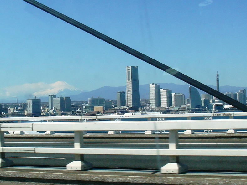 霊峰FUJIを横目にそびえ立つ「LANDMARK TOWER」(撮影協力:親指姫RYO君@ベイブリッジ) 今日はRYUも一緒でRYOだかRYUだかこんがらがりまくり。