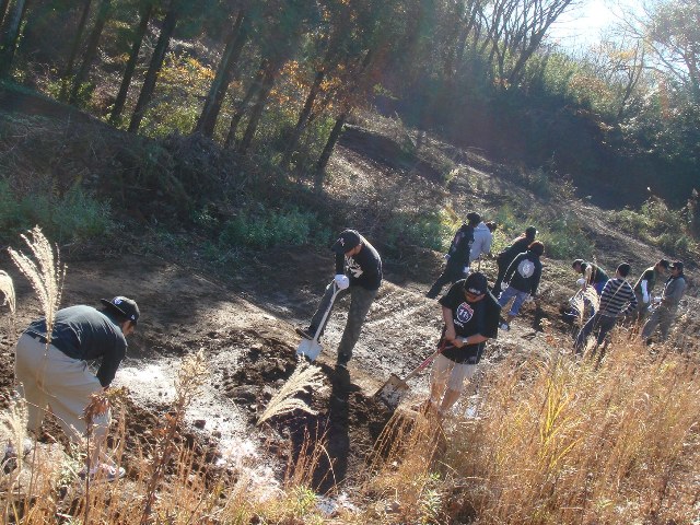 本日の整備メニューはウォッシュボードの整備です。シャベル片手に黙々と土を掘り返す男たちの図・・・平均年齢30over(笑)、今日は波でups&downsではなく関東ローム層でwhoops&deeepsなのdeath★ まさに笑いアリ涙ナシ(RUI 語録)