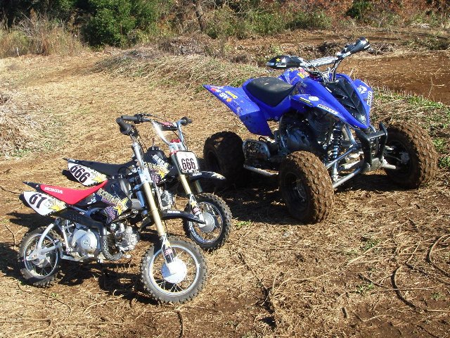ということで何はともあれ9:30スタートのコース整備も一段落していよいよアドレナリン開放のお時間が★ 本日はQUAD2台とPIT BIKE3台でENTRYです。