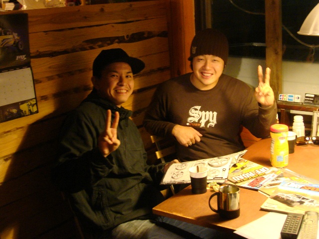 P.T.Mから3日後(つまり昨日・・・)RYUのTOYが来たなと思ったらD22が・・・降りてきたのはこの方達★spy+チームのダウンヒルライダー/高橋 タダシ(写真右)とショートトラックのblk_mktライダー/小高ダイスケ(写真左)がご来店。イマドキの若手にしちゃあアツイSpritを持った益荒男2名でした。MTB業界は全くの無知識なワタシですが彼らの活躍っぷりはこんなでした★タダシblogはhttp://mtbdhtt.exblog.jp/ 、 ダイスケはhttp://www.tubagra.com/riders/entry.php?id=1755&rider=1 まあ実力者なんですよこの若者達は★ 今後の成長が楽しみなワケデス♪ てことで2人はAPTCOのチームメイツってことで自己満足重視でガンガンカッコ良く走ってもらいますわ★ WEST-SIDE最高★
