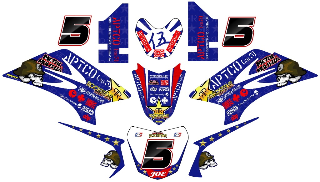 aptcoで販売中のBSE125R1 (KLX110レプリカ)専用のグラフィックキットです。各メーカーロゴが印刷されていますが全てメーカー許可をいただいているオフィシャルグラフィックでございます。カラーも選べます。
