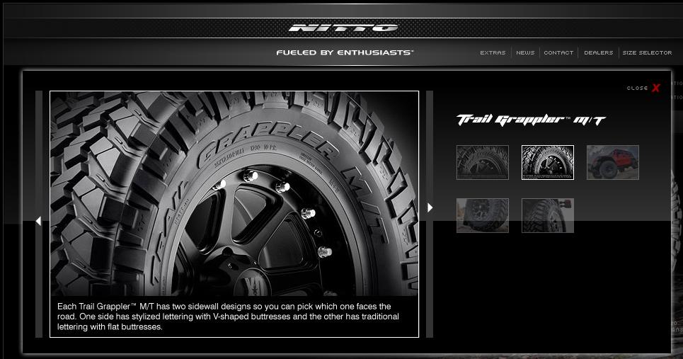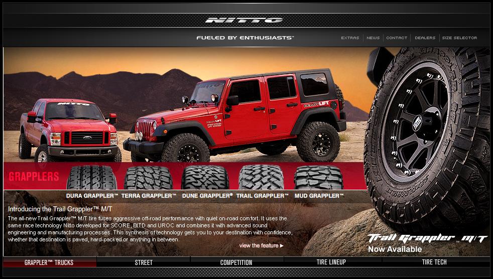 その名も「TRAIL GRAPPLER M/T」 ちょうどTERRAとMUDの中間的なポジションですね。MUD未満TERRA以上のM/Tタイヤと思ってください。ロードノイズやバイブレーションの低減をしつつ走破性能を損なわないタイヤと言うことです。MUD GRAPPLERユーザーなら解るあのノイズとバイブ・・・街乗りなら次はコッチでしょうね!トレッドパターンも何か見たことありそうな・・・東洋OCっぽい。ワタシ個人的には興味大なタイヤですねぇ。最近はGT GRABERもダ~イブ気になりますが。ま、近日にAPTCOで実物をお披露目出来そうです。。。