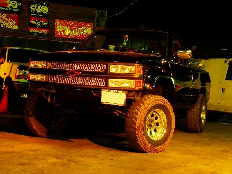 onlow君はAPTCOの最年少で若干22歳にしてこんなクルマのオーナーさんです。日本国内のCHEVでは珍しいスタイルと言ってもいいのでないかと。補足しておくとただのC15じゃありません♪あの7400ccを搭載したBIG-BLOCK野郎こと「454SS」なのです。しかもno bumper / No futureスタイルにFAB-TのLIFTER入りです。未だ若いのにSO-CAL DIRTにも精通しておりまさに<NEW BREED>になりそうです。しかし背が高いよなぁ・・・イマドキのYoung Gunわ・・・。
