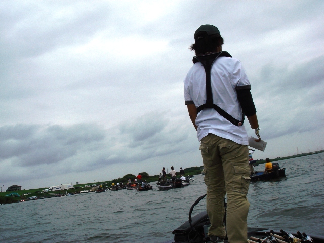先月か先々月に話題にあがったバスフィッシングのトーナメントに本日参加してきました。もちろん「香取プロ」にエスコートされてですが・・・。大会の正式名称は「KOTA'S アメリカンドリームオープントーナメント」なるモノでつい最近アメリカの有名なバスの大会で優勝された桐山KOTAプロがスポンサーであるBASSCATというボートメーカーの主催でプロ・アマオープンのトーナメントをセッティングして下さったとのこと。釣りビギナーのワタシにはよく分かりませんが香取さんの周りにはプロのアングラーさんが沢山いてこの人たちはスゴイ人なんだな位しか分からないのがとても残念でした。