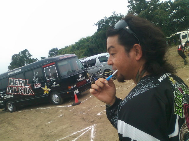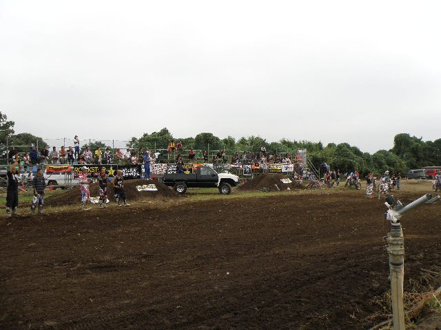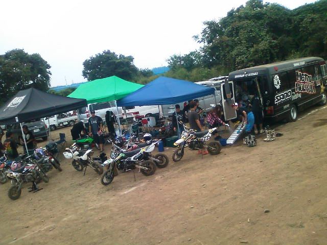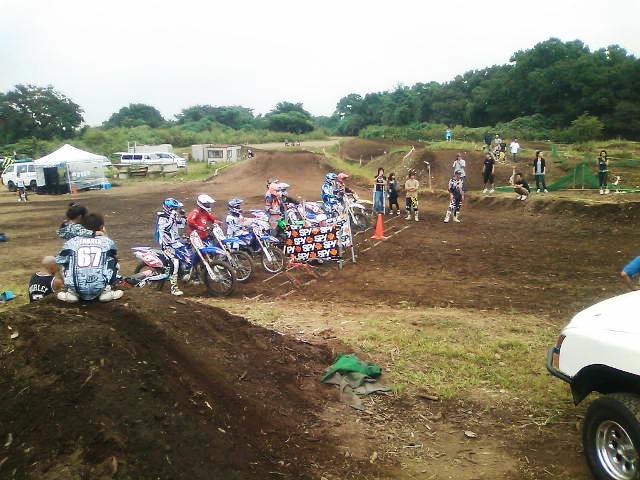 ミニモト遊びレベルのワタクシごときが本当のモトクロスコースに来ること自体が初なのでずらりと並ぶフルサイズ車に圧倒されつつ無事受付終了。本格的なレースには初参加だけあって適度な緊張とワクワク感で完全覚醒しました。