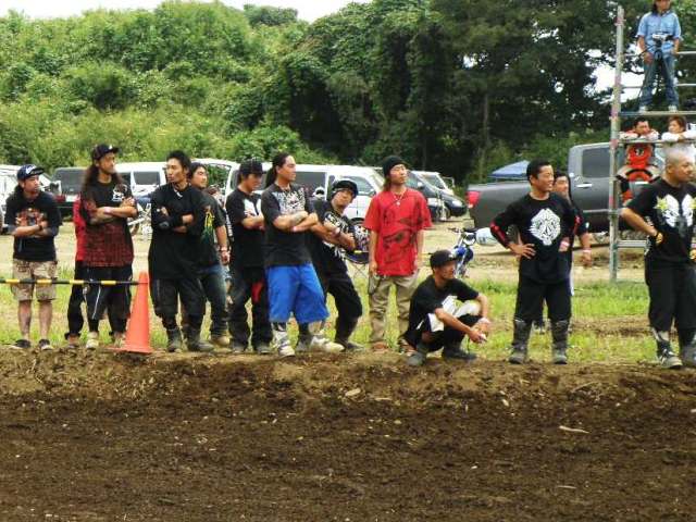 どうも族です。公道での暴走はしませんがコースでは暴走しています。でもミニモトなんで・・・。しかし皆同じポーズなのがなんか笑える。