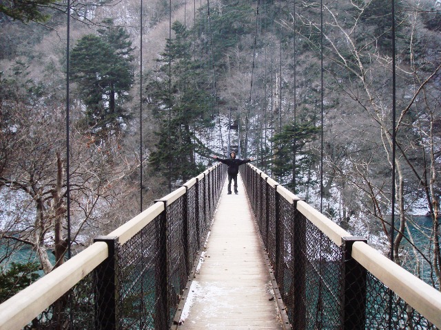 その合間にちゃっかり遊んではいますけど・・・塩原へ行って吊橋を渡ってみたり(本当はスノーボード目的です)