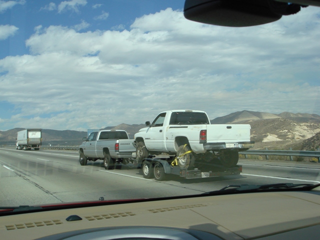 トラックを牽くトラック、バハバグを牽いてキャンプに向かうファミリー等