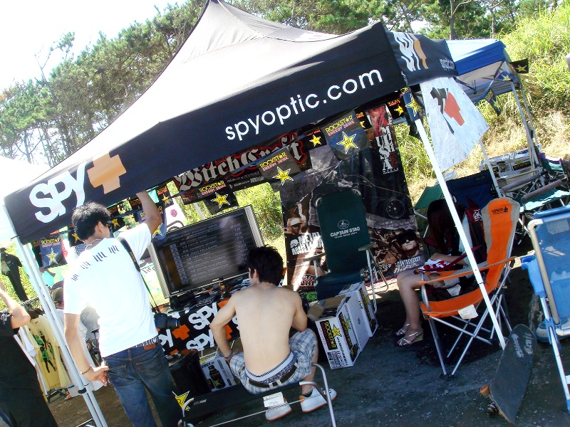 SPYブースじゃないか!!と思うでしょ!だってAPTCOテントないんだもん。。。秋までにはEZUPのカッコイイやつ作らないとな・・・。大人の事情はさておきSPYとM/Mと69starブースてことでプロモーション開始です!この暑さの中でも黒装束な私達。。。別の意味でM/Mデス★
