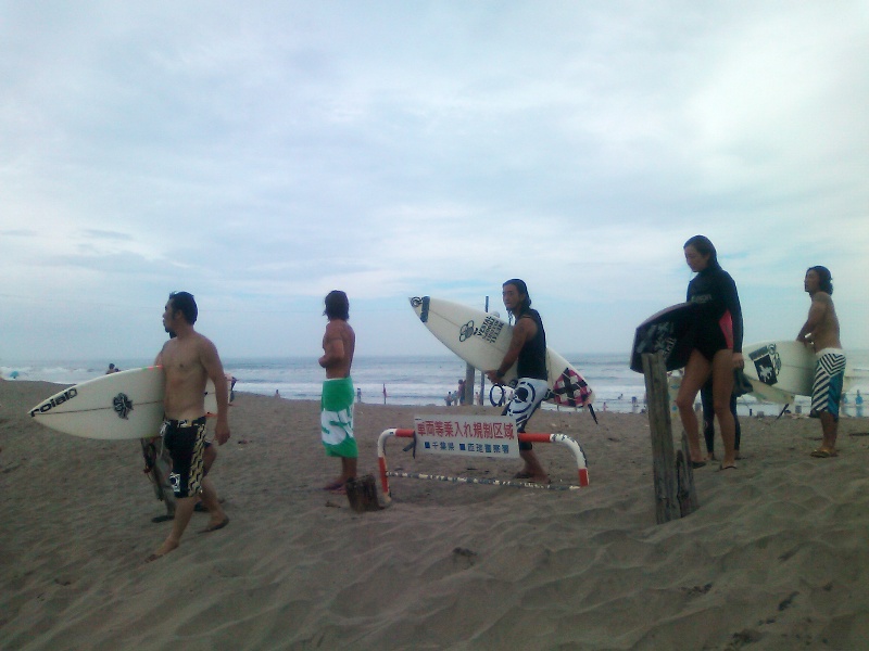 12年ぶりに会った吉田温(スノーボードのPro:右から2番目)のロン毛がダイブ見慣れないが相変わらずヨッシー節は健在のようだった。旧北志賀ハイツメンバーが3人に現在の仲間の集合写真って感じで笑えます。海も山もホントカンケー無いね★soul繋がりって奴ですか♪ 一番左は仕事中なのに店を開けずに徘徊しているcobraさとしチャン★ビーチサイドに佇む君を見てもsurf shopオーナーには見えなかったデス。