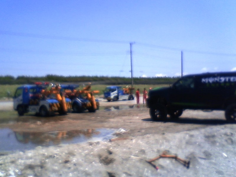 んで、解答はこちら!!JAF車3台来た模様。。。うち2台でなんとか「raise the excursion」。。。初めて見る光景です。 BGMは「レイズミーアップ」を聞きながら写真をご堪能ください。富津岬のイナバウアーとは魔野さんのことを指します。